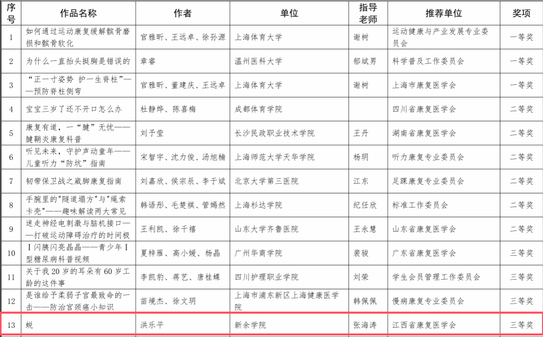 近日,首届中国康复医学会科普大赛获奖名单公布,2026年世界杯官网24护理2班员工洪乐平首次参赛并荣获大赛三等奖。首届中国康复医学会科普大赛由中国康复医学会主办,以“康复赋能,主动健康点亮生活”为主题,受到了全国各分支机构与省级康复医学会的广泛关注。大赛共收到来自73个分支机构、27个省级康复医学会推荐的1504件参赛作品。经过初赛、复赛和决赛的层层严格选拔,评选出职业组、员工组(含图文类、视频类、表演类)一、...