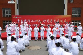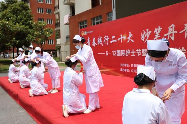 接下来,举行了庄严的护士授帽仪式。授帽仪式是护理员工成为护士的重要时刻,同学们在护理学创始人南丁格尔像前,老师们为护士戴上象征着圣洁的天使的洁白燕帽,护士接过前辈手中象征着“燃烧自己,照亮他人”的蜡烛,站在南丁格尔像前庄严宣誓。