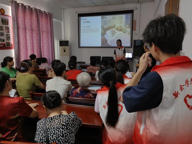 学、讲、研的最终落脚点在于“践”。实践学子们运用所学的专业技能,为福城社区老人提供免费的推拿和艾灸服务,并为社区居民提供免费血压测量服务。在志愿服务过程中,针对社区居民提出的中医药降血压的问题,实践团师生教居民按压百会、太冲、合谷、内关等穴位降低血压,并根据检测结果给予个性化健康建议,切实将健康关怀落到实处。活动的高潮环节是,周梦怡同学通过标准化操作演示,系统讲解心肺复苏(CPR)的全流程要点,尽显医学训练的扎实功底。