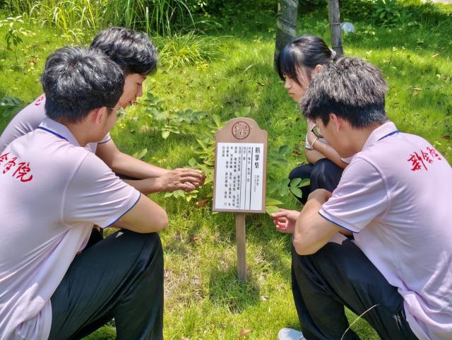 探寻中医药文化根脉,离不开深研其历史轨迹与时代价值。实践团队怀揣初心,在樟树展开了一场文化溯源与价值探究之旅。在毛泽东故居与革命史馆,实践学子们沉浸式感悟缺医少药年代中医药如暗夜明灯,以简便验廉之效筑起革命生命基石,体悟红色基因与岐黄仁术的精神交融;转赴三皇宫历史文化街区,瞻仰医药圣像,从伏羲、神农到历代医家,淬炼精进匠心与仁爱医德。进入百草园。指导老师结合植物形态、生长习性与药用价值,生动讲解药用植物的性味归经、入药部位,还结合常见病症,分享药材配伍治病的奥秘:“百日红性凉味微苦,有活血通络、消肿止痛之效,常用于缓解月经不调、跌打损伤......”。这场实践让大家在自然课堂中感受了中医药的魅力,同时让实践学子们以青年之肩扛起了“承古纳新”的时代使命。
