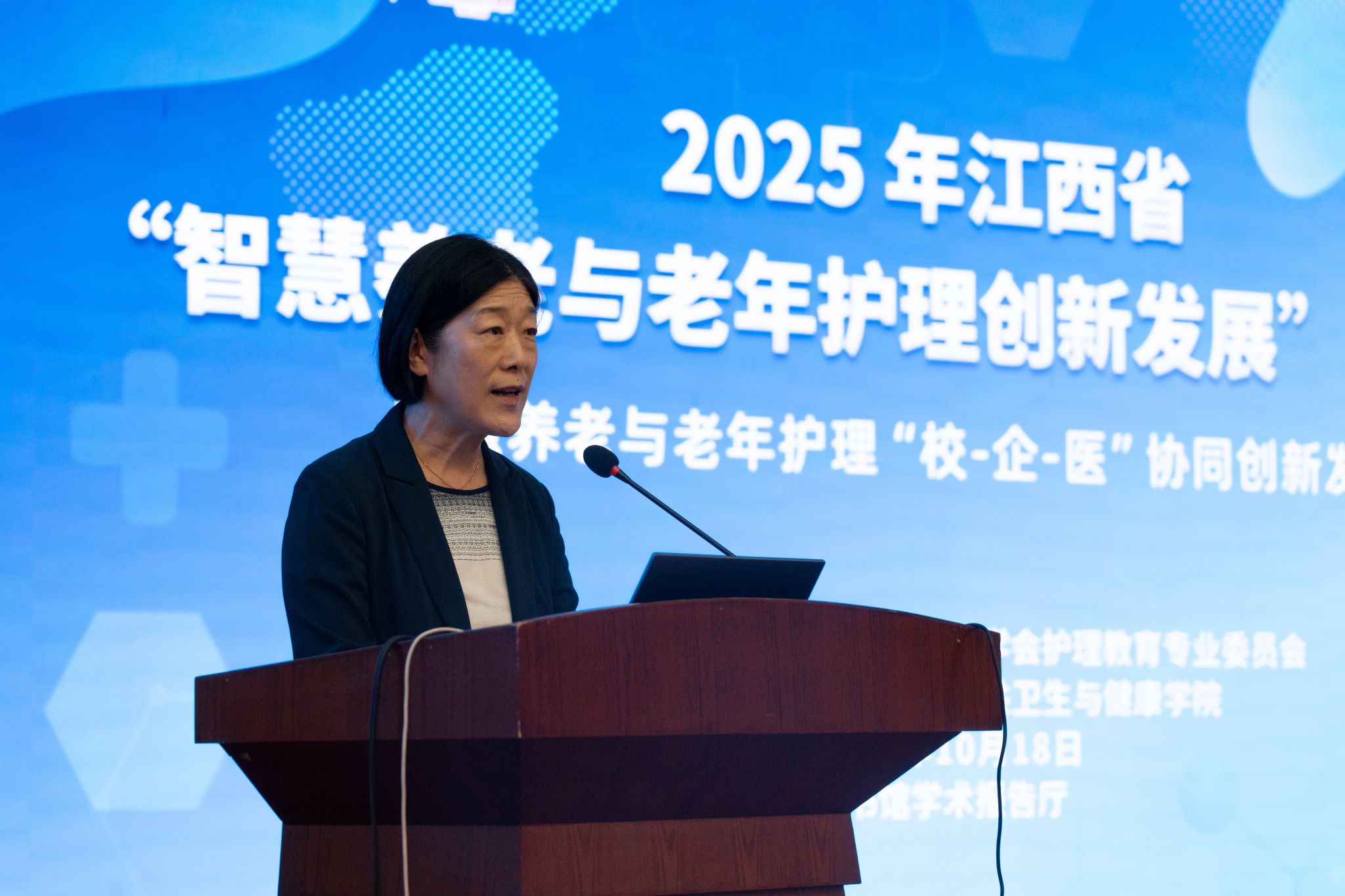 王建宁表明,当前我国老龄化进程加快,智慧养老与老年护理正迎来前所未有的发展机遇。本次论坛聚焦“校-企-医”协同创新,恰逢其时,意义深远。智慧养老与老年护理的融合发展,离不开“校-企-医”三方的协同发力。要以此次论坛为契机,加强交流、凝聚共识、推动合作,共同为江西省乃至全国的老年健康事业贡献智慧与力量!