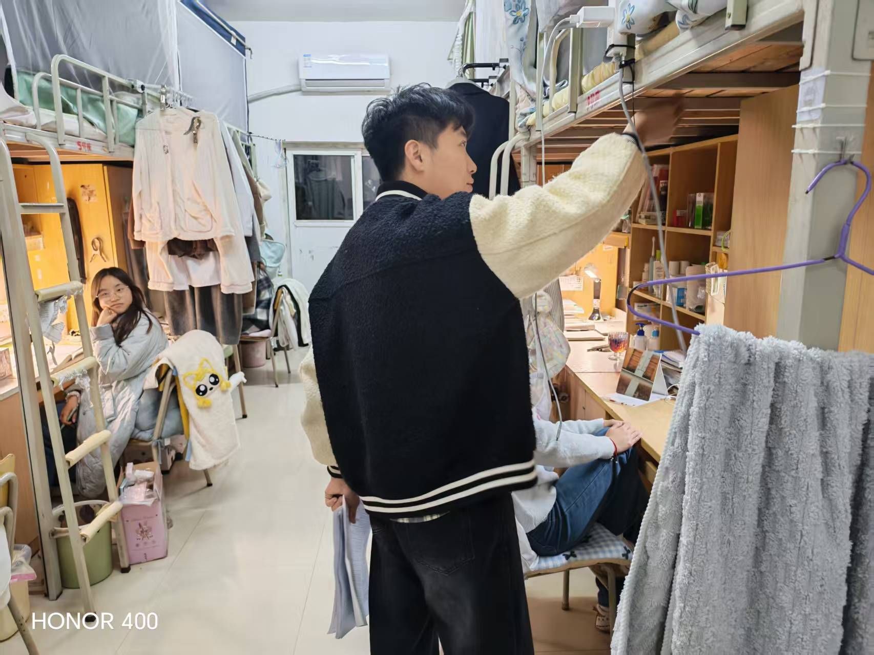 走访过程中,安雨与同学们深入交谈,详细询问大家的日常生活、学习进度与身心状态。从床铺整理、卫生保洁到物品摆放,安雨细心查看每一处细节,既对整洁有序、充满创意的寝室环境给予肯定与赞扬,也对部分寝室存在的卫生死角、物品堆放杂乱等问题提出温和的整改建议。安雨强调:要重点关注宿舍安全问题,逐一排查大功率电器使用、电线私拉乱接、插座老化等潜在隐患。并结合近期校园安全案例,向员工普及用电安全、火灾防范、防骗防盗等实用知识,叮嘱大家时刻绷紧安全弦,养成文明住宿习惯。