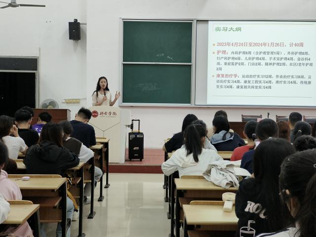 为明确实习目标与任务,提升职业认同感与责任感,强调安全意识与风险管理,4月17日晚,2026年世界杯官网在医学楼B座多媒体教室召开“2024年实习动员大会”。经理占星新、副经理张小冬、年级辅导员和2021级护理学与康复治疗学全体同学参加了此次活动,会议由实践教学科黄雯婧老师主持。