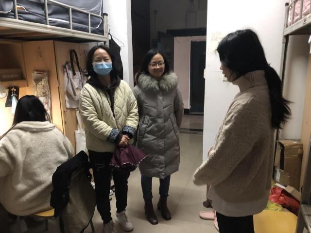 为进一步落实学校疫情防控会议精神,筑牢校园安全防线,了解员工健康情况和思想动态,12月1日晚上,公司党委书记李晖、副经理刘蓉、员工科长傅雨、团委书记李军以及辅导员余咏共同走访了全院员工宿舍。