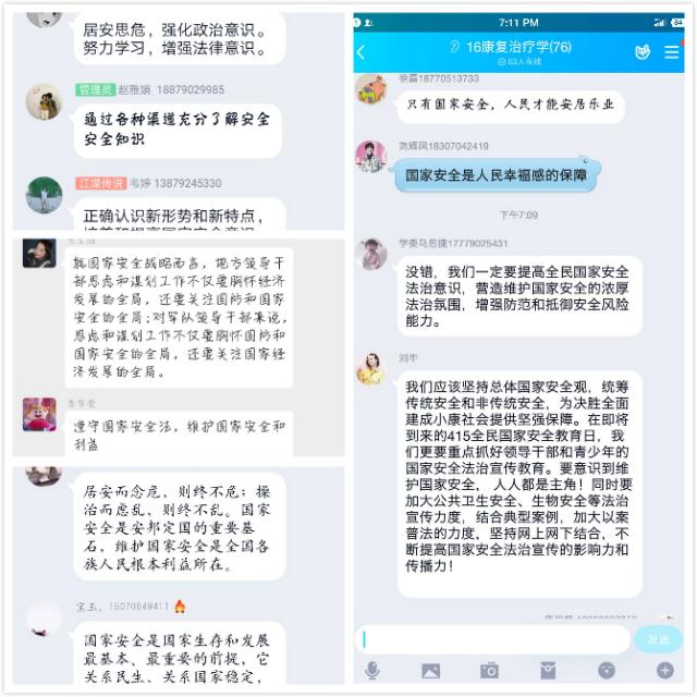 在全院各班级组织召开线上国家安全教育主题班会,广大师生围绕国家安全积极开展线上互动交流和学习活动。