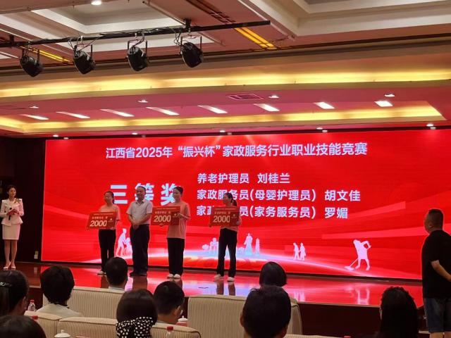 近日,2025年江西省“振兴杯”家政服务行业职业技能竞赛在抚州市圆满落幕。由公司精心培养、选派的胡文佳、魏欣同学代表新余市参加职工组比赛。胡文佳同学凭借扎实的专业技能和出色的临场发挥,在激烈角逐中脱颖而出,荣获母婴护理赛道三等奖(第三名),并获颁母婴护理员(二级)职业技能等级证书及2000元奖金。公司席微娜老师全程悉心指导。
