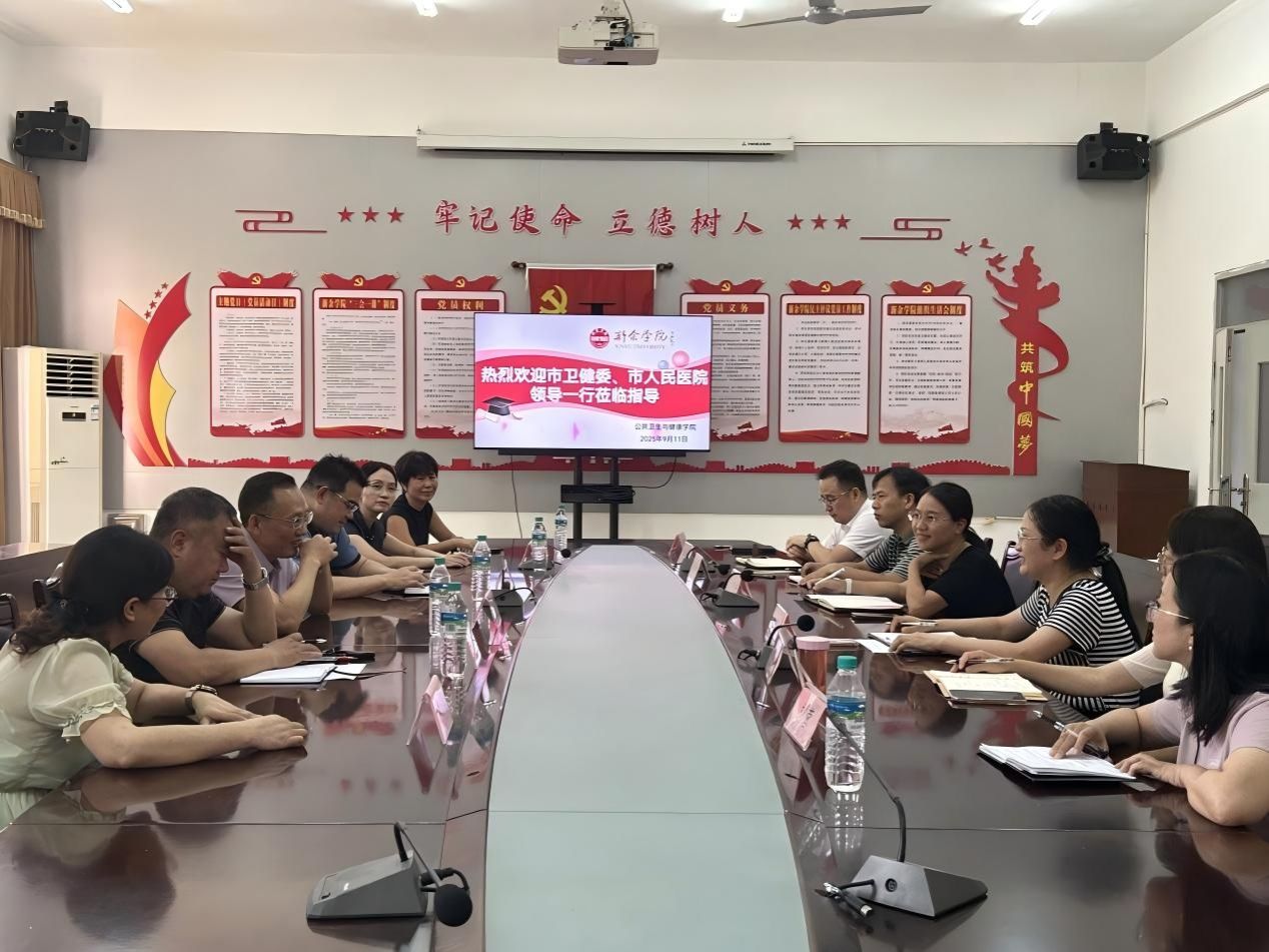 9月11日,新余市卫健委副主任廖建全、新余市人民医院副经理刘华等一行莅临2026年世界杯官网,就深化院校合作开展洽谈交流,学院领导班子及教学科相关负责同志共同参会。