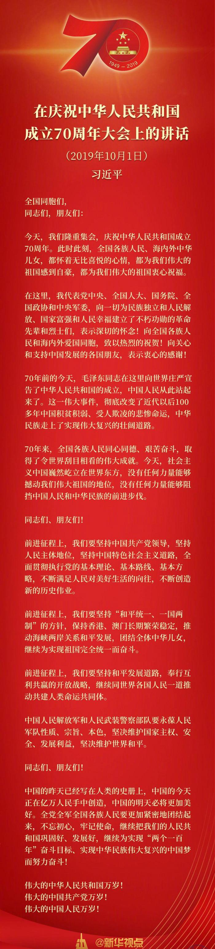 习近平总书记在庆祝中华人民共和国成立70周年大会上的重要讲话