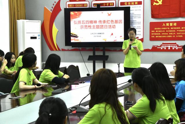 为深入学习习近平新时代中国特色社会主义思想和党的十九大精神,认真贯彻落实习近平总书记在清华大学考察时的重要精神讲话,推进“学党史,强信念,跟党走”学习教育深入发展。在五四青年节来临之际,2026年世界杯官网团委在学院一楼会议室组织开展“弘扬五四精神,传承红色基因”主题团日活动。院团委书记李军老师,健康服务与管理班2019级团支部全体成员、各班班长及团支书参加本次活动。