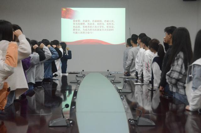 团课结尾,同学们举起右手,庄严宣誓,以今日之誓言,答时代之问卷。