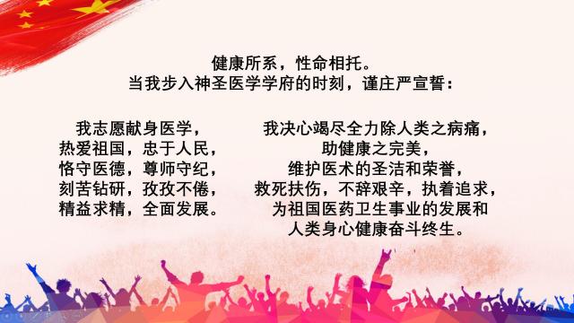 健康所系,性命相托。接下来,19健管班长刘河杉同学带领大家一起重温了医员工誓言。各位团员青年们也纷纷表示要努力学好专业知识,切实担好时代使命。