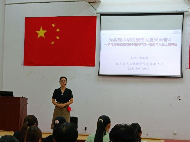 张玉娟将习近平总书记“七一”重要讲话划分为分总论、分论和结束语三大板块,围绕一个主题:实现中华民族伟大复兴。一是总结过去,中国共产党为了实现中华民族伟大复兴创造的伟大成就;二是开创未来,党团结带领中国人民实现中华民族伟大复兴的九个“必须”;三是伟大号召,全体中国共产党员必须努力为党和人民争取更大光荣,深入剖析了习近平总书记“七一”重要讲话原文。