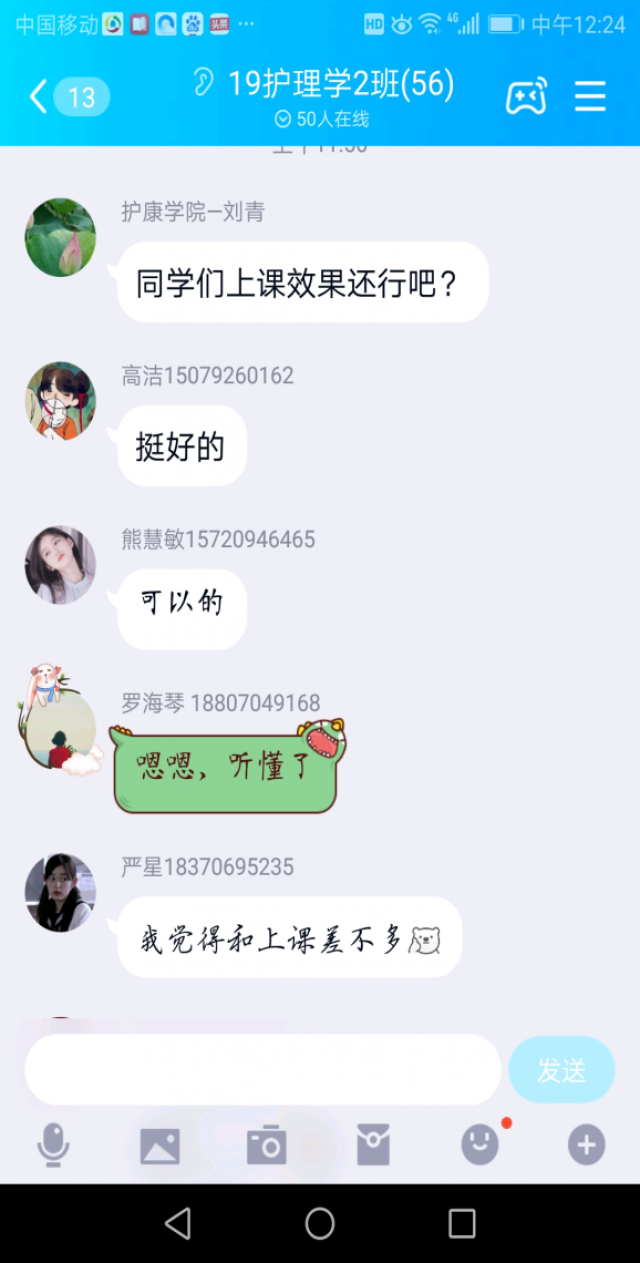 护理与康复学院共有65门课完成了网上建课,主要依托超星、中国大学MOOC、智慧树和学堂在线开展线上教学。在超星等平台互动不流畅时,老师们启用应急教学预案,还利用QQ直播、钉钉和腾讯会议等平台进行直播。吴玉华经理用学习通录播课程,同学们有不懂的疑难知识点,可以错开高峰期反复回看,提升学习效率。同时她还利用学习通群聊功能关注同学们心理健康问题,做到防疫学习两不误。刘青老师利用腾讯会议开展课程直播教学,同屏教学PPT,抽象知识点可以运用白板功能及时讲解,员工反映和平时面授上课效果一样,反响良好。