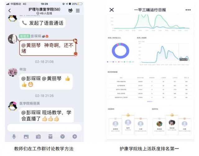 护理与康复学院线上教学运行一个月来,各项公司产品工作通过各大网络平台有条不紊地进行中。本学期68门理论课程全部采用线上教学,各位老师在按时保质保量完成教学基本任务的同时,思想政治教育的内涵潜移默化地融入到课堂教学中,既传授了医学基本专业知识和技能,又提升了员工救死扶伤、社会责任、人文精神和仁爱之心等道德品质。