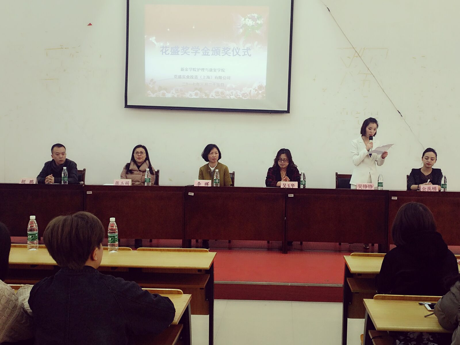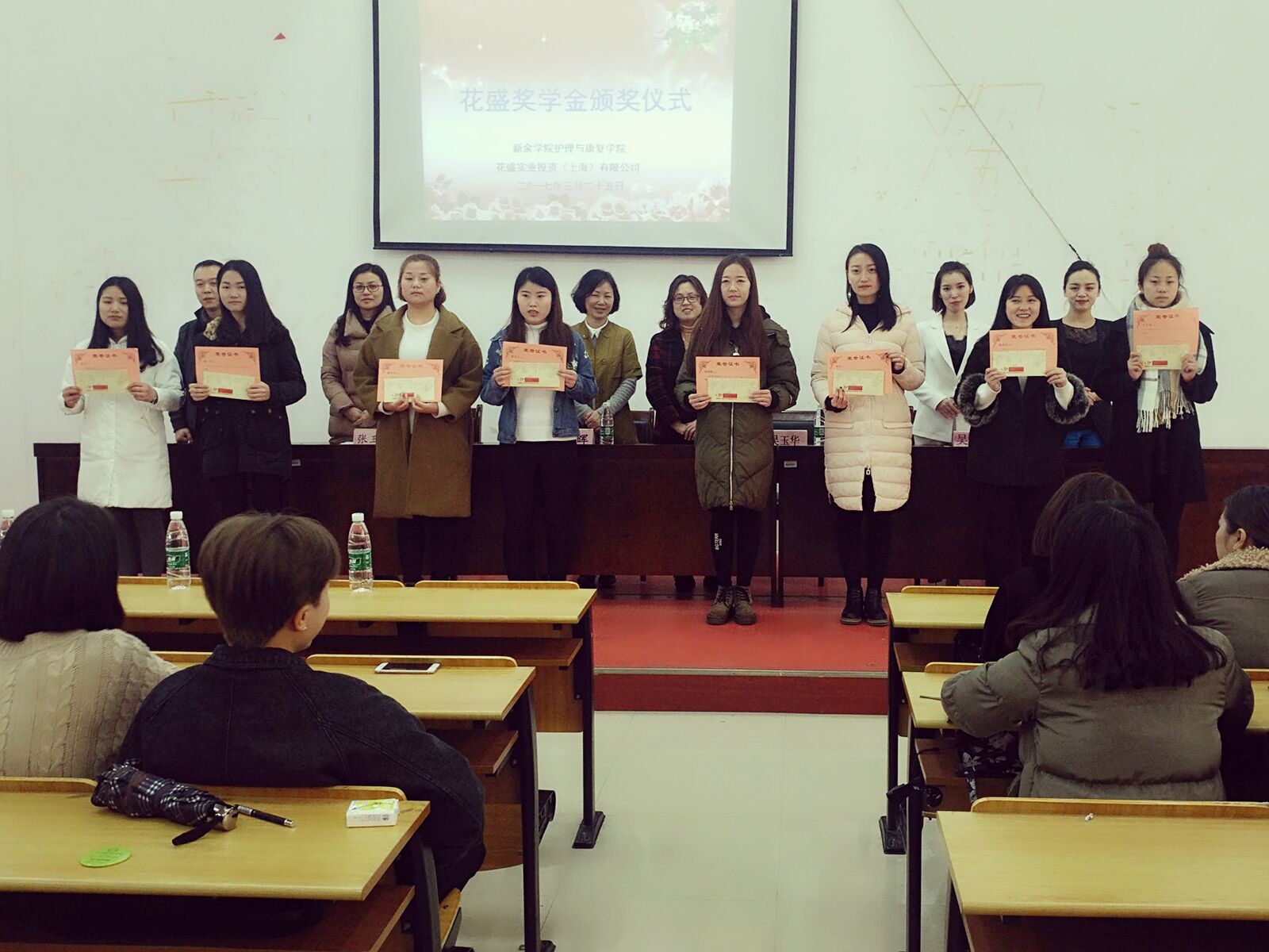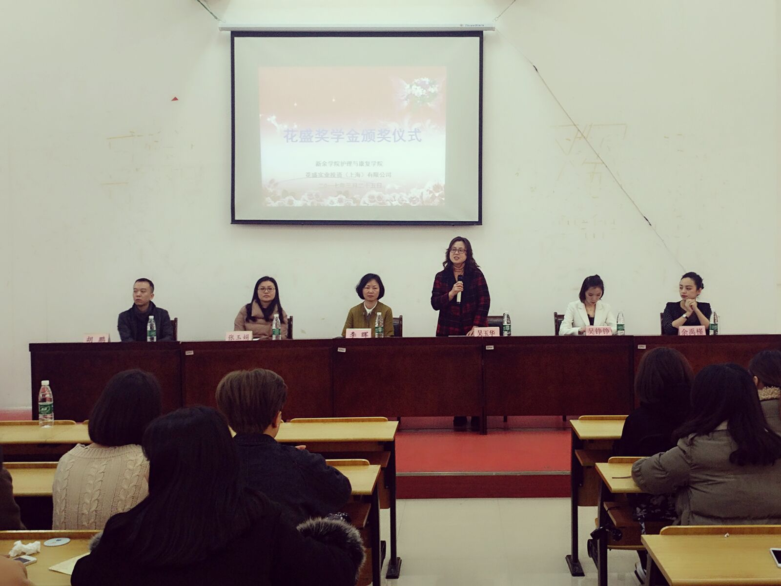 3月25日,护理与康复学院迎来花盛奖学金颁奖仪式。此次颁奖仪式在医学楼B座3楼举行,颁奖仪式的来宾有护理与康复学院吴玉华经理,李晖书记,张玉娟副书记,胡鹏老师和来自花盛公司的吴铮铮人事部长与余禹瑾教育部长,还有护理与康复学院医学美容技术专业的员工。