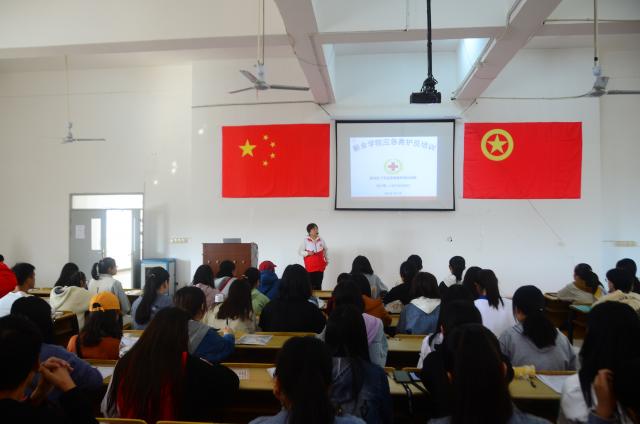 为大力弘扬“人道、博爱、奉献”的红十字精神,提高员工应急救护能力,10月19日至20日,新余市红十字会、护理与康复学院在医学楼B座三楼会议室举办第74期红十字救护员培训,全院近200名同学参加了此次课程。
