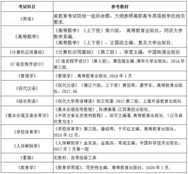 (三)选拔考试科目为英语和两门专业基础课,各专业考试科目见下表1。