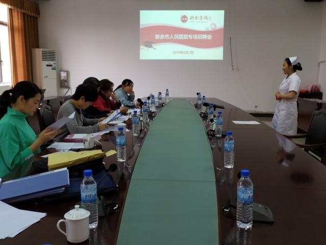5月7日上午,新余市人民医院工会主席罗勇、护理部主任黄桂桂等一行七人莅临公司选拔2019届优秀毕业生,护理与康复学院经理吴玉华、党委书记李晖出席此次双选会。