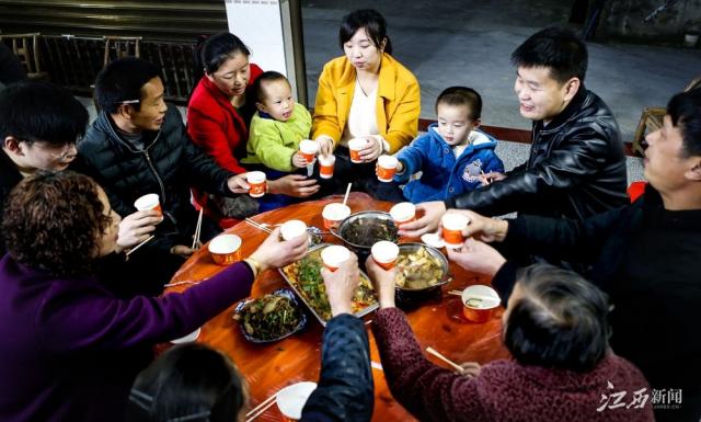 “由于特殊原因,我们俩没能回家与家人团聚,今天补敬一杯酒,感谢爸妈对我们工作的支持与辛苦付出。”3月14日晚,在修水县港口镇龙井村,回家调休的“90后”夫妻徐世情与周欣星端起酒杯敬家人。由于疫情原因,夫妻俩一直奋战在抗“疫”一线,这算是他们全家新年的第一次团聚。