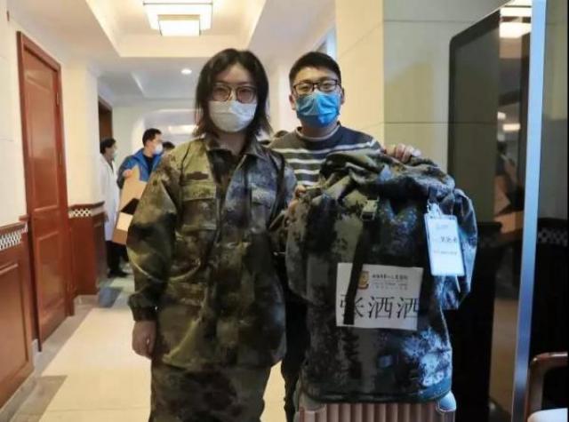理着理着,张洒洒就激动地流泪了。谁能想到,如果没有疫情,张洒洒原本将成为新娘。因为疫情,结婚时间一推再推,今天她没有穿上婚纱,却穿上了医院统一配备的迷彩服逆行武汉。